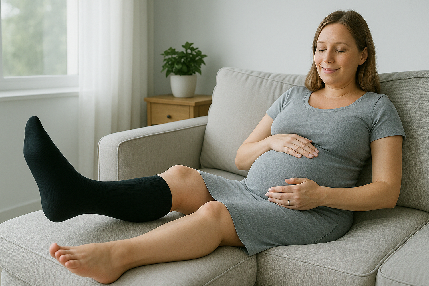 Compression socks are recommended both pre- and post-natal to improve circulation, reduce swelling in the legs and ankles, and relieve discomfort from fluid retention. During pregnancy they help lower the risk of varicose veins and DVT, while after birth they support recovery, easing pressure and promoting healthier blood flow.