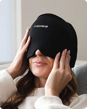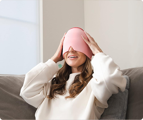 Pop your migraine relief cap in the freezer or microwave for hot or cold therapy.
